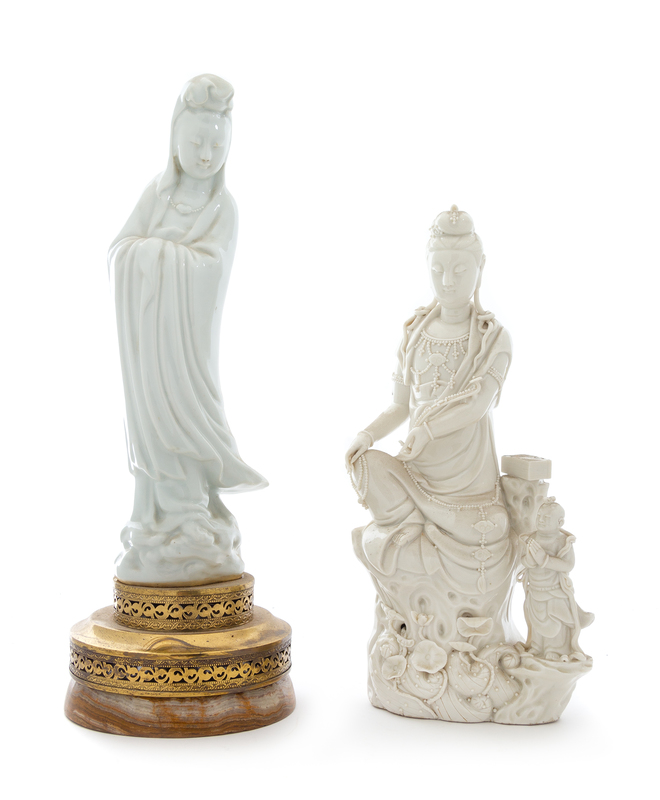 Two Blanc-de-Chine Porcelain Figures of Guanyin