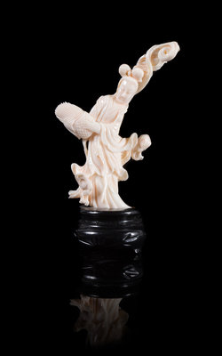 of a pale pink tone, carved to show as a willowy lady holding a basket.