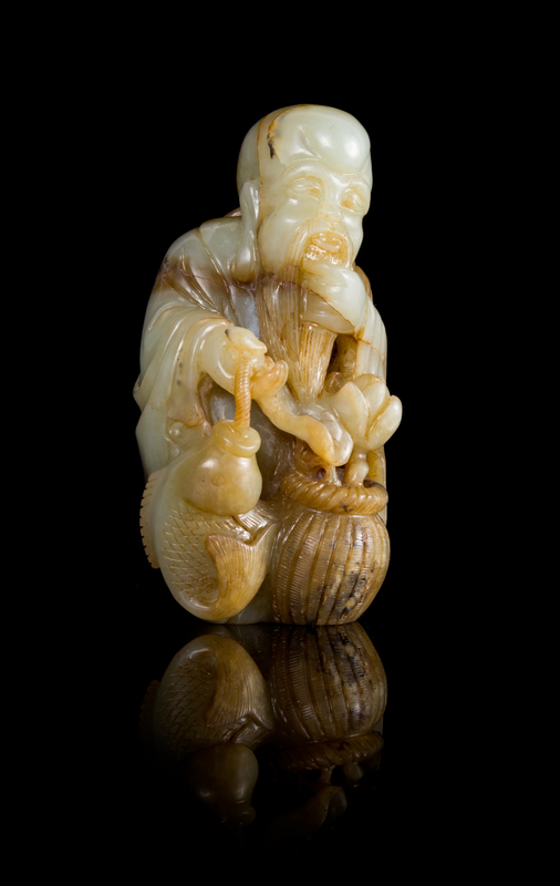 A Celadon and Brown Jade Figure of the Immortal of Longevity, Shoulao