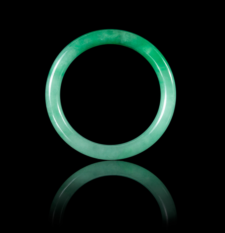 An Apple Green and Celadon Jadeite Bangle