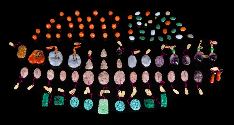 A Large Collection of Ninety-Two Hardstone Pendants and Jewelry Articles