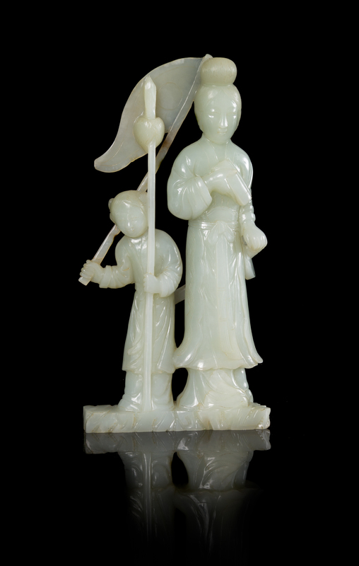 A Celadon Jade Figural Group
