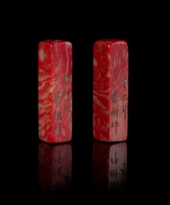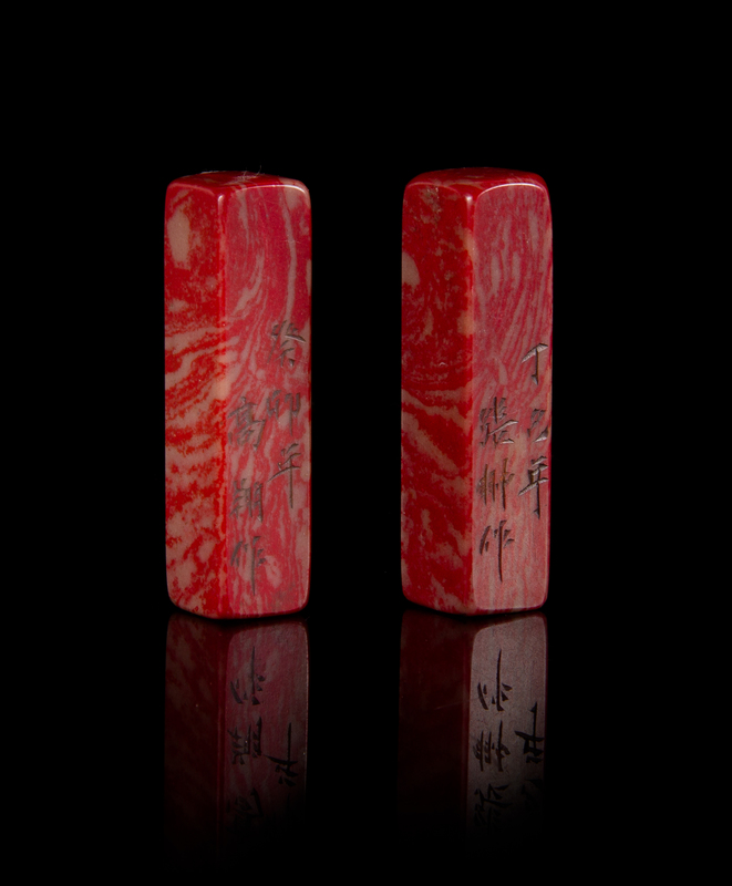 each of rectangular form with plain sides, each carved with a maker's mark.