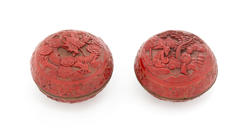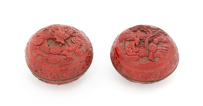 Two Cinnabar Lacquer Seal Paste Boxes and Covers