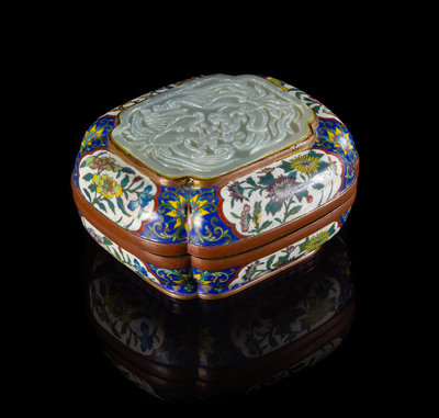 A Celadon Jade Inset Cloisonne Enamel Covered Box