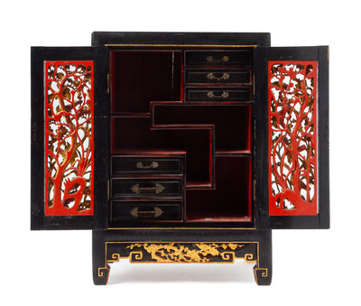 A Small Gilt Decorated Red Lacquered Wood Kang Cabinet, Kanggui