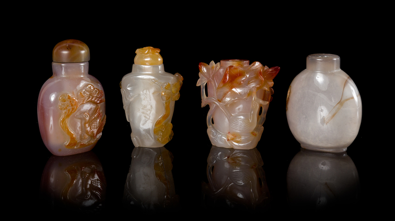 Four Carved Agate Snuff Bottels