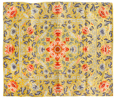 A Chinese Yellow Ground Embroidered Silk Kang Cover