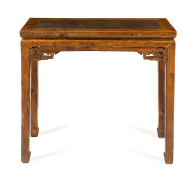 A Chinese Pudding Stone Inset Hardwood Corner-Leg Table, Banzhuo