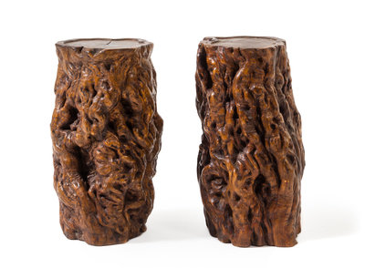 each of irregular naturalistic gnarled form, the top finished to a smooth, flat surface.