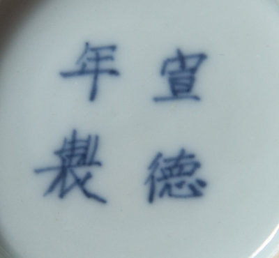 each of ovoid form with rounded walls, the underside bearing an apocryphal Xuande four-character mark in underglaze blue, raised on a fitted hardwood stand.