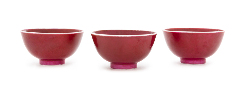 Three Chinese Sang-de-Boeuf Porcelain Tea Bowls