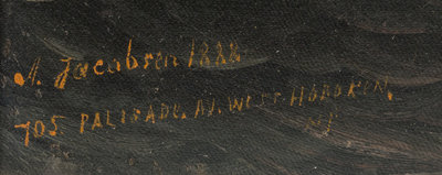 signed A. Jacobsen, dated and inscribed 705 Palisade Av. West Hoboken, NJ (lower left)