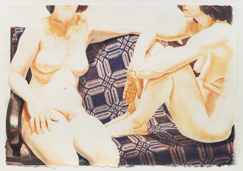 Two Nudes on Blue Coverlet, 1977