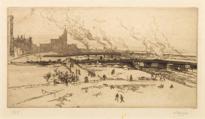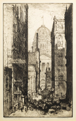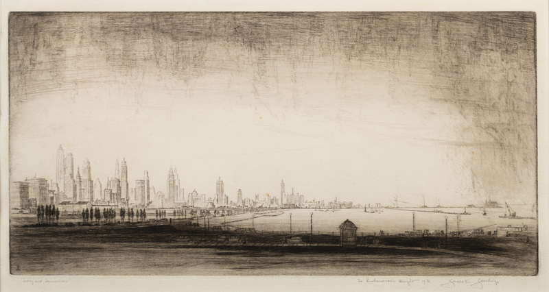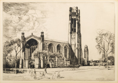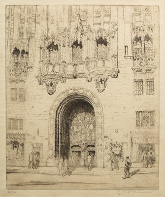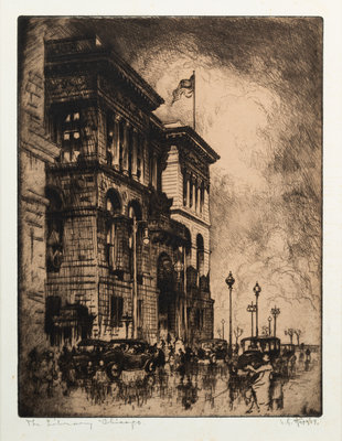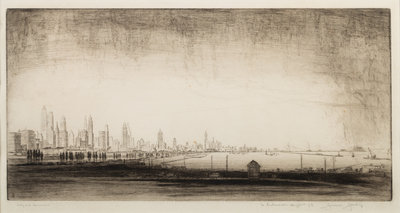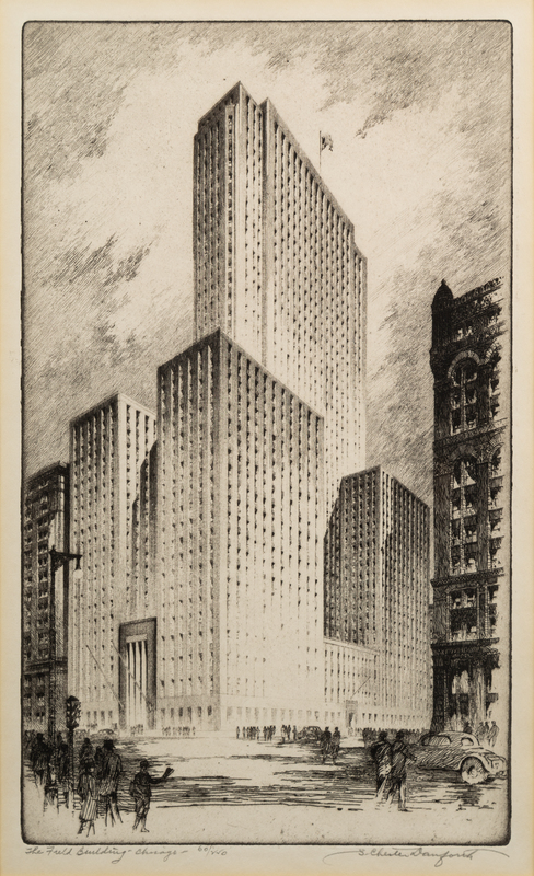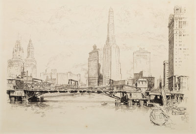 Federal Building, Chicago. -- Library, Chicago. -- Chicago River, 1928. -- The Field Building, Chicago. -- Entrance to the Tribune Tower. -- and 5 others, complete list available upon request.10 drypoint etchings, image of largest 16 1/4 x 9 3/4", most limited and signed, matted and framed (not examined out of the frames).