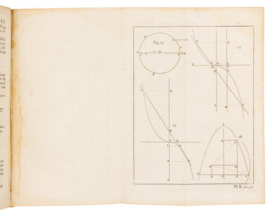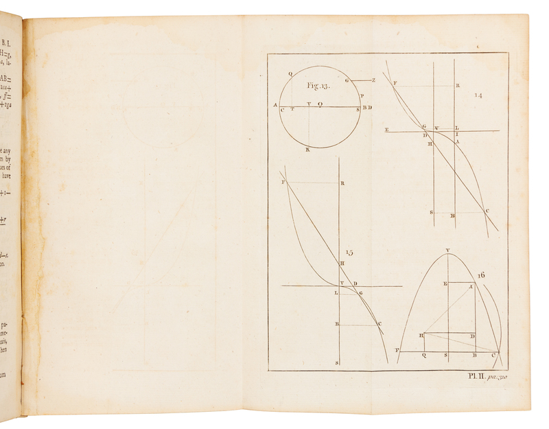 8vo (204 x 125 mm). 13 folding copperplate engravings. (Some spotting and browning, dampstaining to upper margin.) Contemporary calf gilt, brown morocco lettering-piece gilt (some staining, joints starting, split to spine). FIRST EDITION. Emerson "arrange[d] with Nourse, the publisher, for a regular course of mathematical manuals for young students, and the publication of these followed in rapid succession. They were fairly successful, for Emerson, though he possessed no originating power, had a comprehensive grasp of all existing knowledge in all branches of his subject" (DNB).