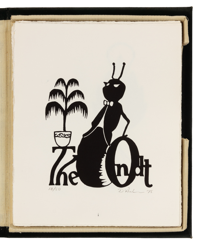 [FINE PRESS]. JOYCE, James (1882-1941). -- Joseph J. D'AMBROSIO, illustrator. The Ondt and the Gracehoper. From two Tales of Shem and Shaun. Chicago: The Compulsive Printer, 1975.