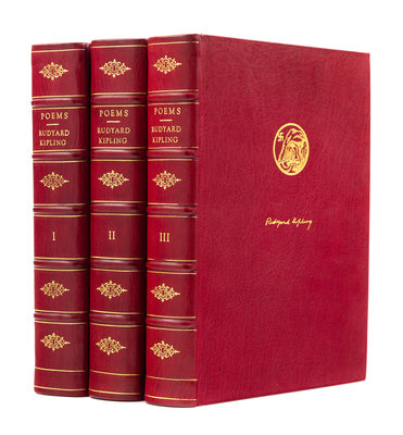 3 volumes, 4to (260 x 189 mm). Numerous illustrations. Modern red morocco, upper covers with central elephant and Kipling's signature gilt, spines gilt, top edge git, others uncut. LIMITED EDITION, number 481 of 525 copies SIGNED BY KIPLING.
