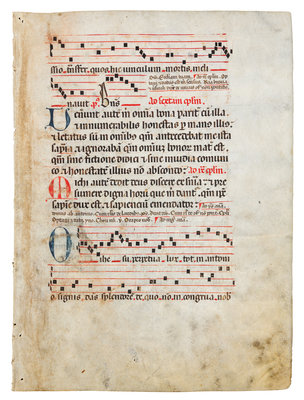 [MANUSCRIPT]. Antiphonary leaf, in Latin, on vellum.