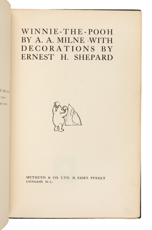 MILNE, Alan Alexander (1882-1956). Winnie-the-Pooh. London: Methuen & Co. Ltd., 1926.