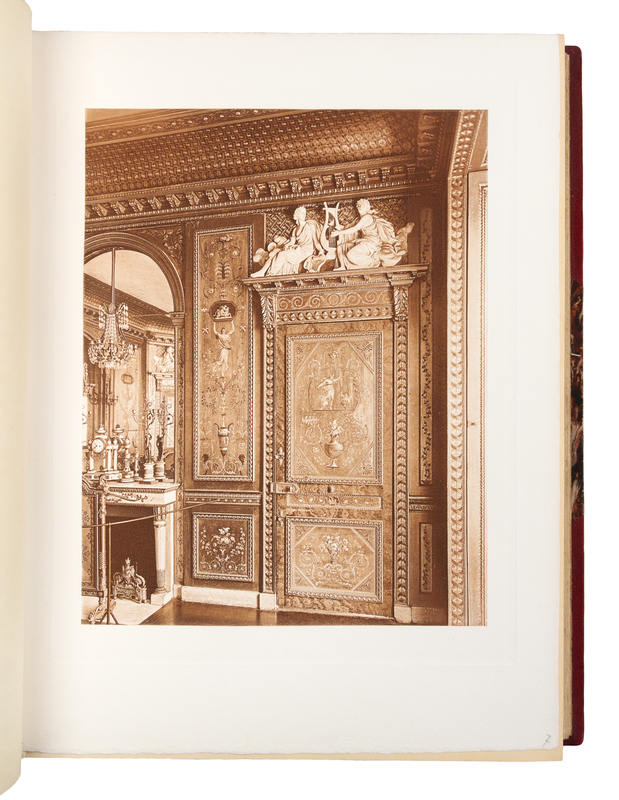 2 volumes, folio (397 x 305 mm). Titles printed in red, black, and gold, a profusion of collotype plates. (Some very minor spotting.) Contemporary red half morocco gilt, marbled boards, top edges gilt, others uncut (a few tiny stains). LIMITED EDITION, number 84 of 200 copies, the plates depicting various furnishings.