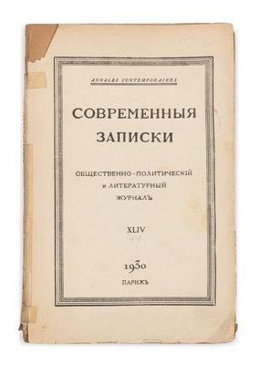 NABOKOV, Vladimir (1899-1977). "Sogliadatai" ["The Eye".] In: Sovremnnye Zapiski [Contemporary Novels] No.44 (incorrectly numbered 43 on title-page). Paris: November 1930.