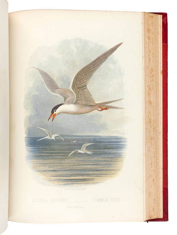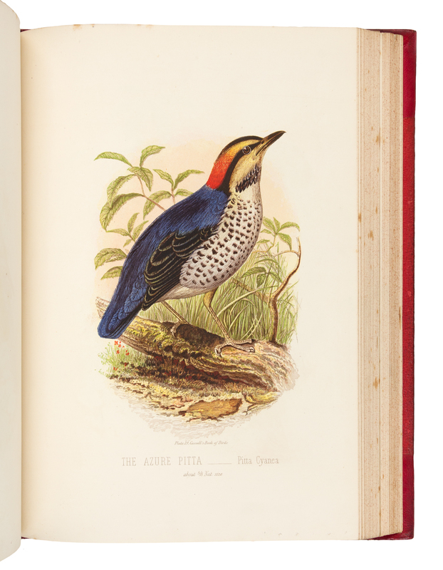 4 volumes in 2, 4to (260 x 182 mm). 40 chromolithographic plates of birds and eggs, numerous in-text illustrations. Contemporary half red morocco gilt (some light wear or soiling). FIRST EDITION IN ENGLISH, based the "Birds" section of Alfred Edmund Brehm's scientific reference work Brehms Tierleben.