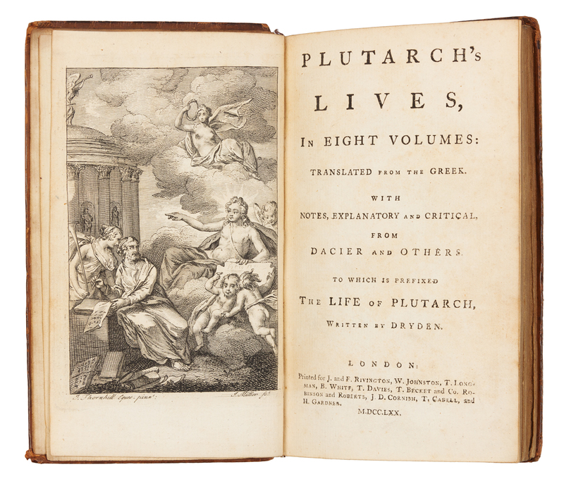 PLUTARCH (ca 46-ca120). Plutarch's Lives, in Eight Volumes: Translated from the Greek...to which is prefixed The Life of Plutarch, Written by Dryden. London: for J. and F. Rivington and others, 1770-1771.