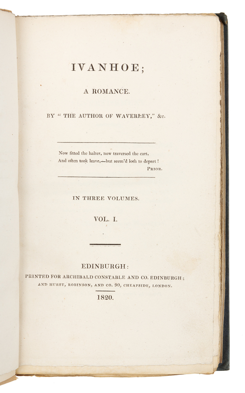 SCOTT, Walter, Sir (1771-1832). Ivanhoe. Edinburgh and London: for Archibald Constable and Co., Hurst, Robinson, and Co., 1820.