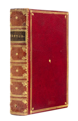 8vo. (Some scant spotting.) 18th-century crimson morocco gilt, green morocco lettering-piece gilt, smooth spine gilt, edges gilt (a few tiny wormholes to spine, spine slightly sunned, otherwise fine). Provenance: Marginalia in an early hand; Liechtenstein library (bookplate). RARE: according to American Book Prices Current, only two copies of this work have sold at auction in the last 40 years. Not in Adams; Brunet IV:274; USTC 857768.