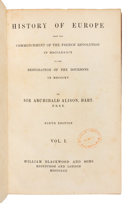 ALISON, Sir Archibald (1793-1867). History of Europe from the Commencement of the French Revolution. --History of Europe from the Fall of Napoleon. Edinburgh and London: William Blackwood and Sons, 1853-1866.