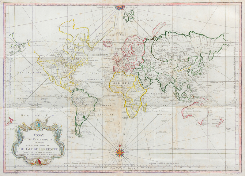 BELLIN, Jacques Nicholas (1703-1772). Essay d'une Carte Reduite, Contenant les Parties Connuees du Globe Terrestre. Paris, 1748.