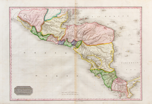 Engraved map of Central America, image 506 x 699 mm (sheet 570 x 822 mm), hand-colored in wash and outline. (Some pale spotting, a few mostly marginal stains.) From Pinkerton's Modern Atlas, depicting the topography of the region, and noting "English Settlements" throughout Honduras.
