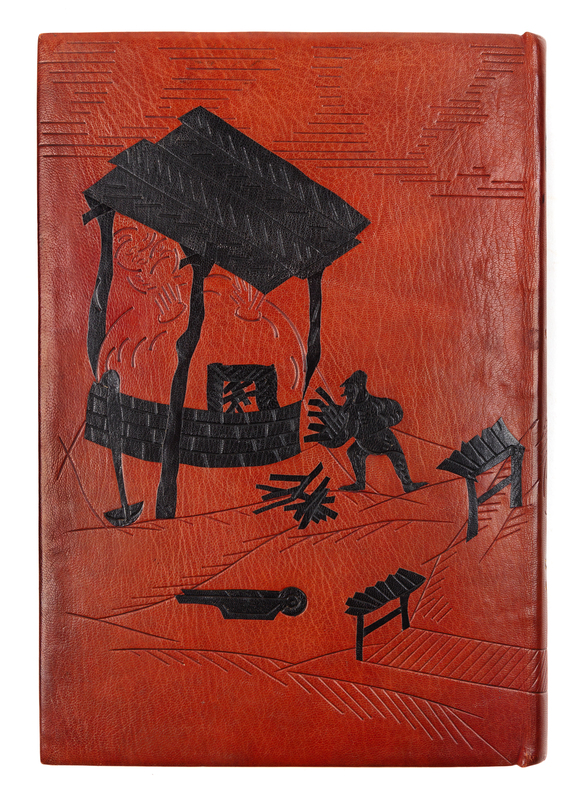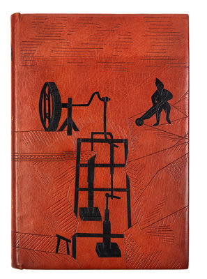 Folio (330 x 227 mm). Tan morocco, covers and spine with overall mining scene in black calf onlay and blind, top edge gilt, stamp-signed "AB 1973." LIMITED EDITION, number 289 of 1000 copies.