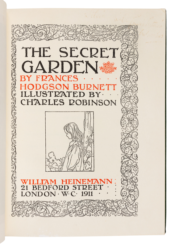 BURNETT, Frances Hodgson (1849-1924). Charles ROBINSON, illustrator. The Secret Garden. London: William Heinemann, 1911.