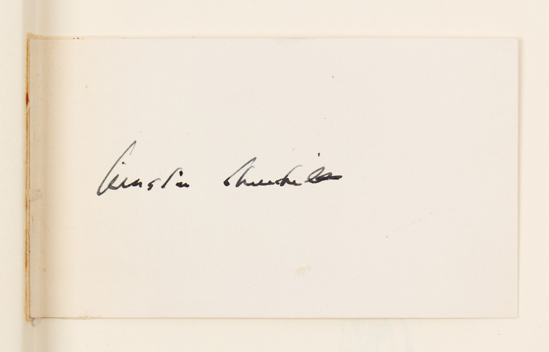 4 volumes, 8vo (240 x 152 mm). Numerous maps and charts; CLIPPED SIGNATURE BY CHURCHILL TIPPED IN. Publisher's red cloth (corners bumped, minor chipping to head and foot of spines); original pictorial dust-jackets. FIRST EDITION.