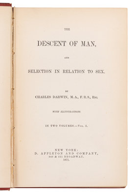 DARWIN, Charles (1809-1882). The Descent of Man and Selection in Relation to Sex. New York: D. Appleton and Company, 1871.