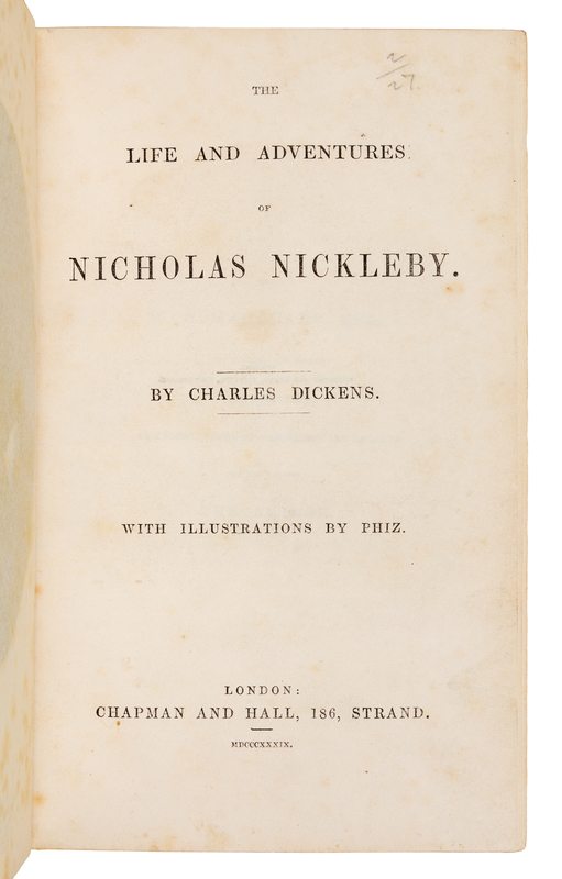 DICKENS, Charles. The Life and Adventures of Nicholas Nickleby. London: Chapman and Hall, 1839.