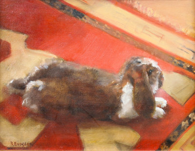Rabbit on Rug, oil on canvas, signed B.Endsley (lower left)