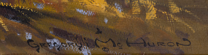 Claimed, oil on board, signed Gregory McHuron (lower right)