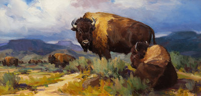 Badlands Bison, 1994, signed Ray Sexton (lower right)