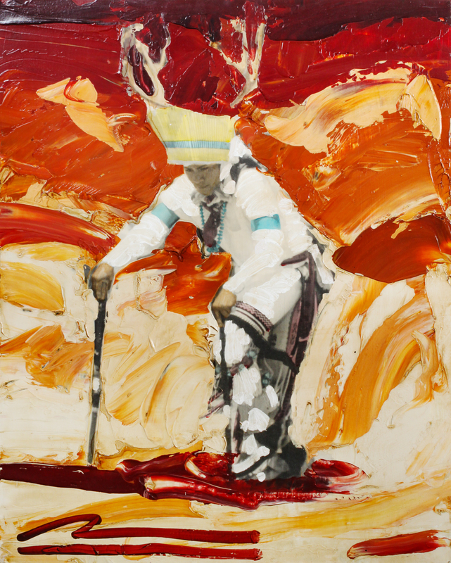 Ceremonial Dancer, oil on board, signed illegibly (lower left)