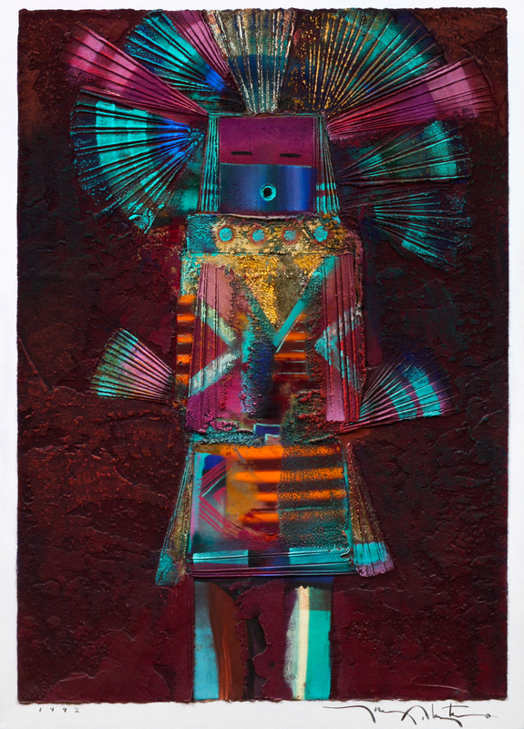 Kachina, 1992, acrylic and gold leaf on canvas, signed Tony Abeyta (lower left and verso), dated (lower right)