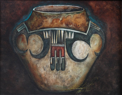 Indian Pottery, watercolor on board, signed K Tourrette Sept 1990 (lower right)