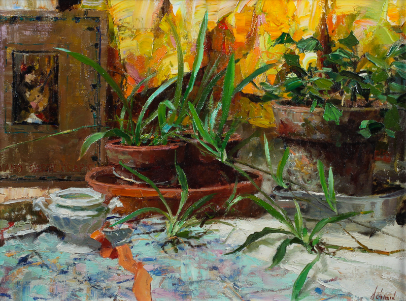 Clay Pots, oil on canvas, signed Schmid (lower right)