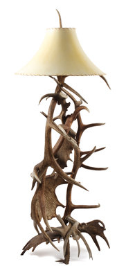 Western Style Moose Paddle and Elk Antler Floor Lamp