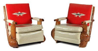 Pair of Western Style Burled Wood Club Chairs by Uptown Furniture Company