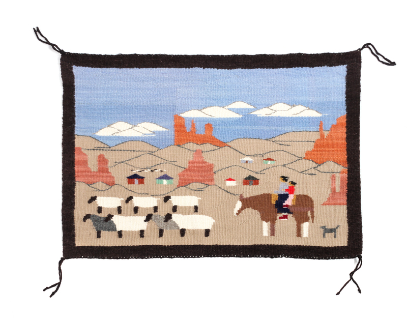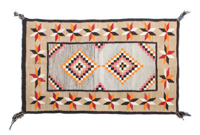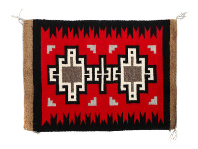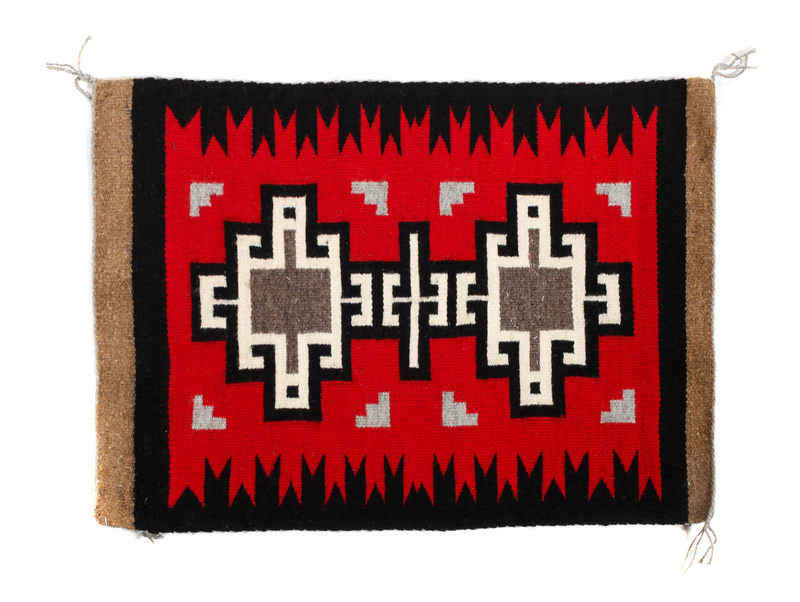 having stepped diamond medallions and Vallero star border, together with a Wide Ruins mat, a Ganado red mat and a Crown Point pictorial by Annie Kae. 4 total.