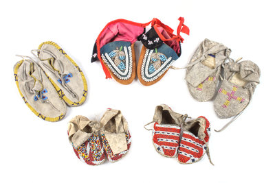 Five Pairs of Beaded Child's Moccasins