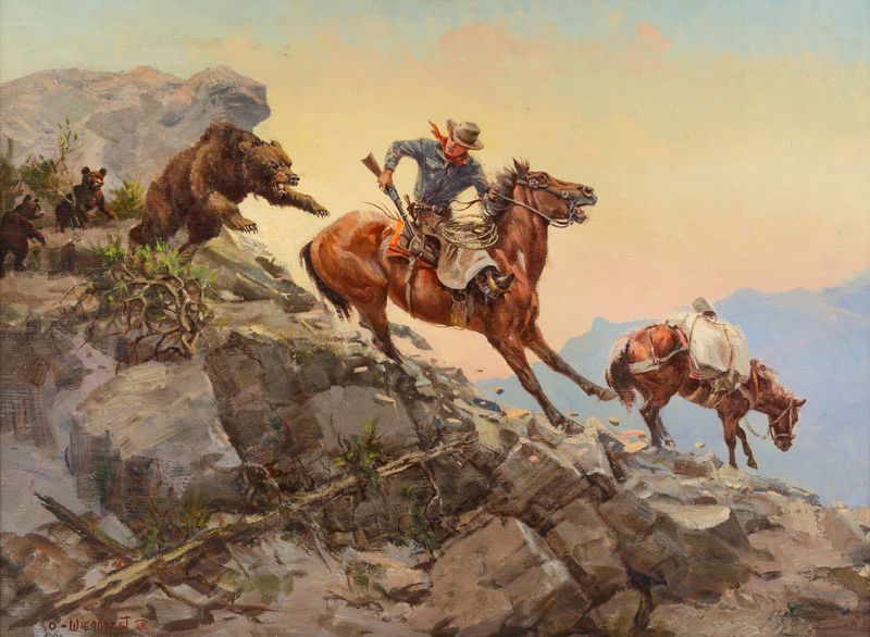 An Unexpected Attack, oil on canvas, signed O-Wieghorst (lower left)